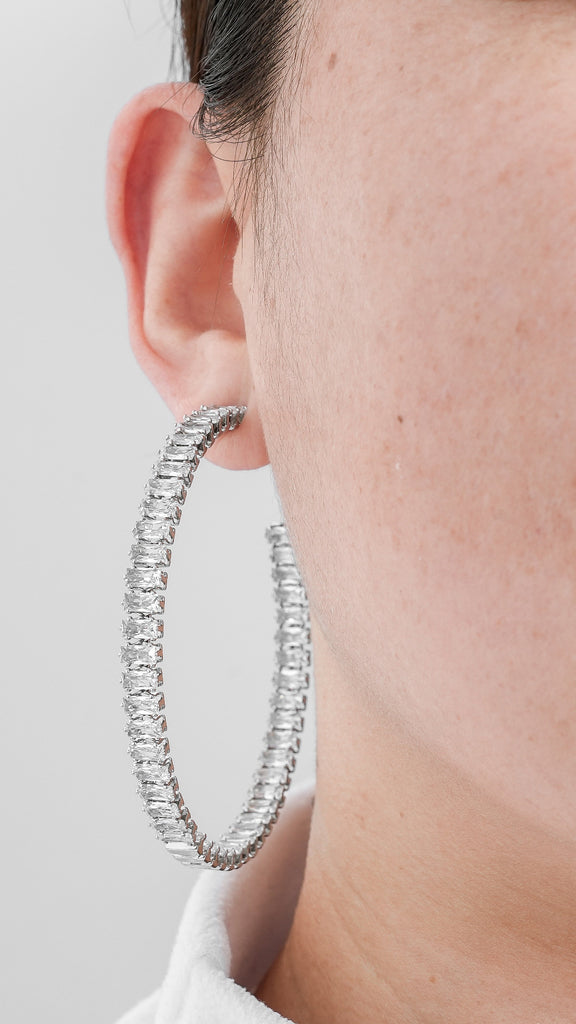 Rivka Friedman White Rhodium Clad Rectangle CZ hoop