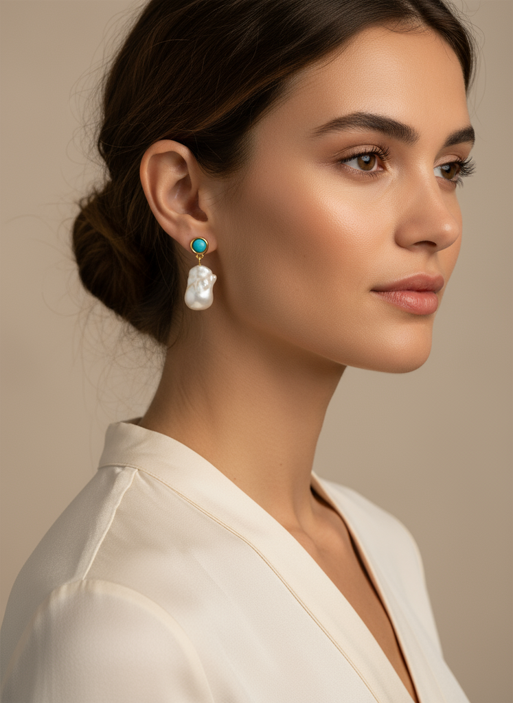 Turquoise + Baroque Pearl Drop Earring