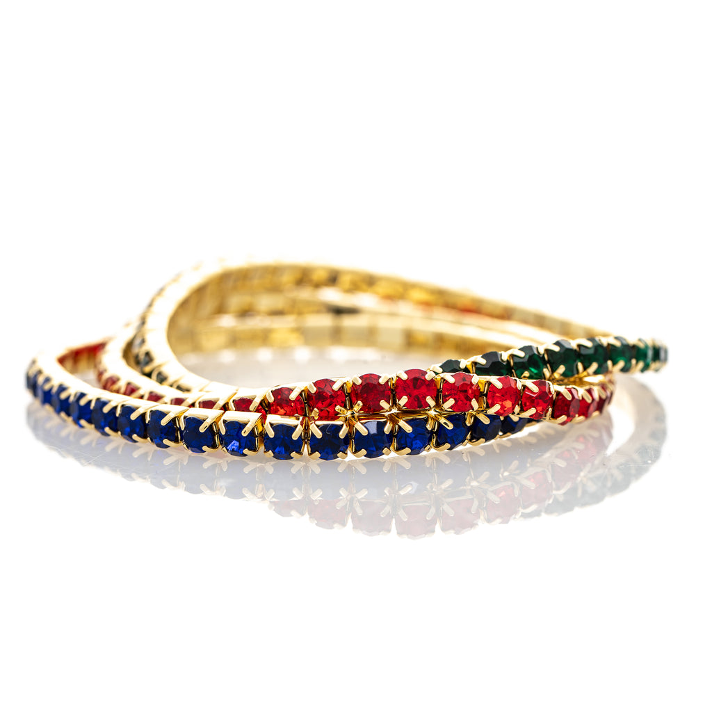 18K Gold Plated Prong Set Cubic Zirconia Stretch Bracelet Set in Ruby, Emerald and Sapphire