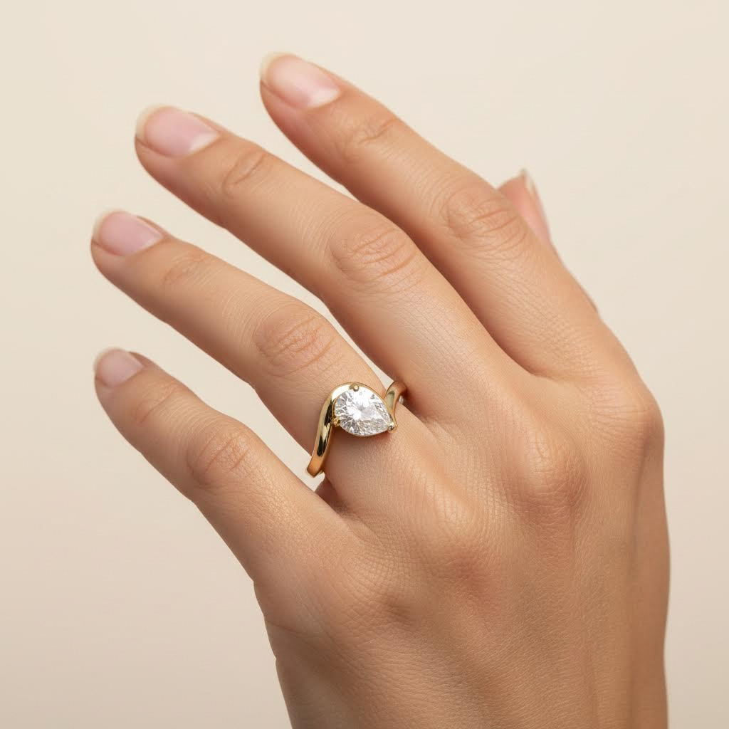 Rivka Friedman 18K Gold Clad Polished Wavy Band Pear Cut CZ Ring