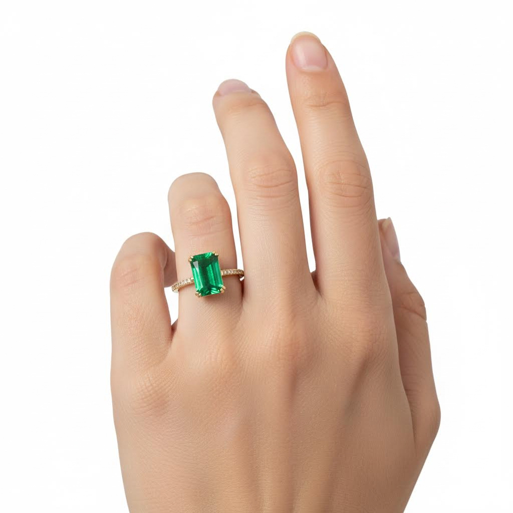 Rivka Friedman 18K Gold Clad Emerald Cut CZ Solitaire Ring with Pavé CZ Band Accents